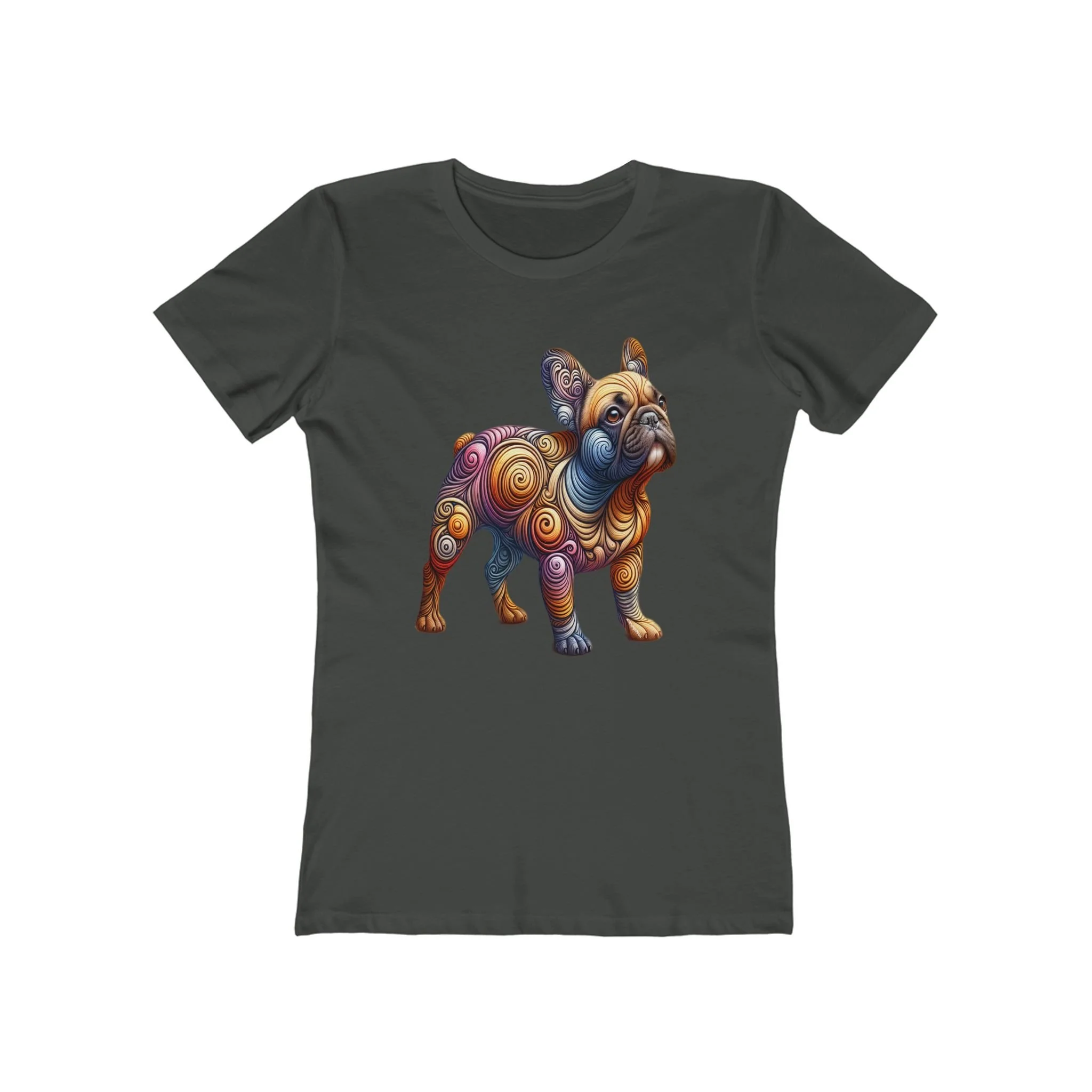 This fun frenchie tshirt, inspired by the Frolicking with Frenchies coloring book, is perfect for any frenchie mom. It gives off a playful and cheerful vibe, fitting seamlessly into the wardrobe of dog lovers. Ideal for casual wear or as a statement piece for special occasions.
